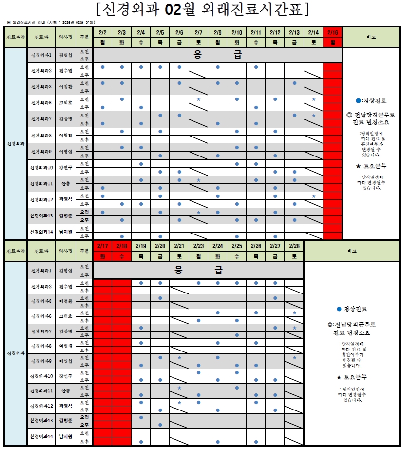 | 신경외과13 | 김병준 | 오전 | ● | ● | ★ | |||