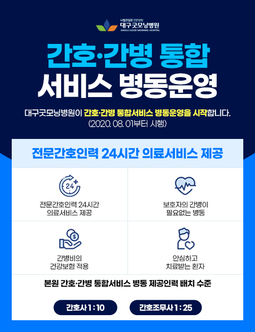 간호간병통합서비스병동 제공인력 배치 수준 안내(2025년 5월 현재)