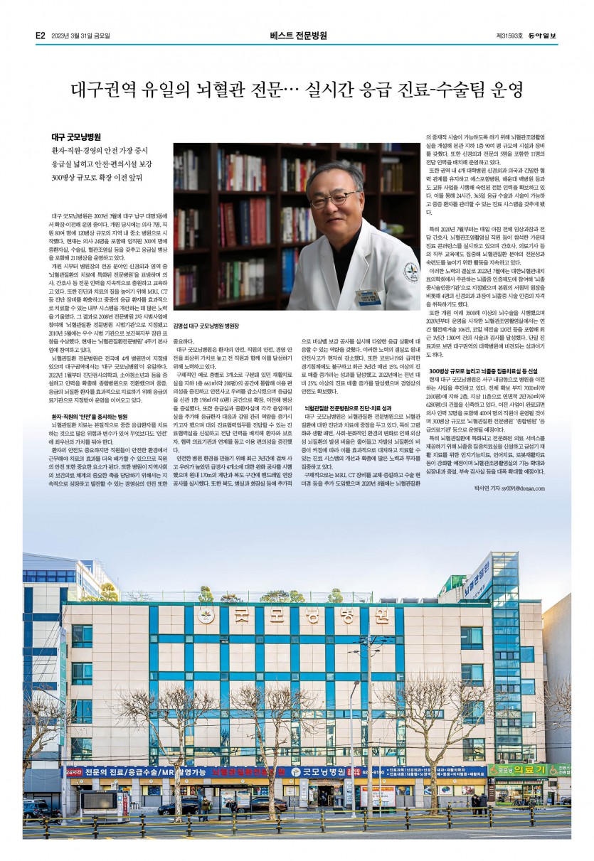 [동아일보] 대구권역 유일의 뇌혈관 전문 --- 실시간 응급 진료 / 수술팀 운영